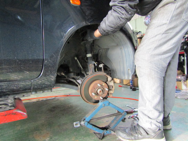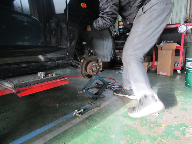 自体を車輌から取り外す必要がある為にタイヤを 外してサスペンションをフリーにします。 ⇒ |