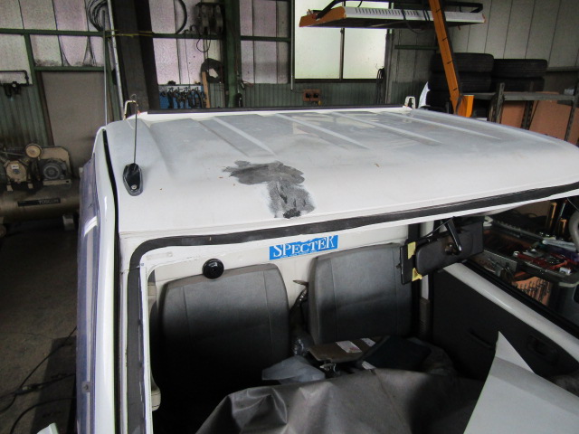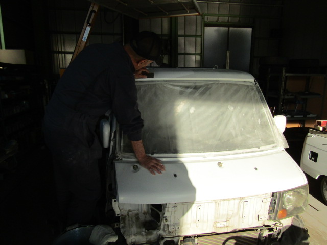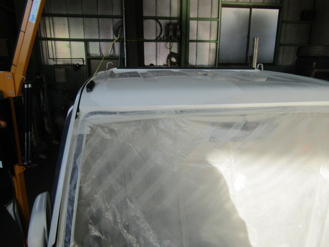 フロントガラスの交換組付けも同時に 完成させていきます。 |